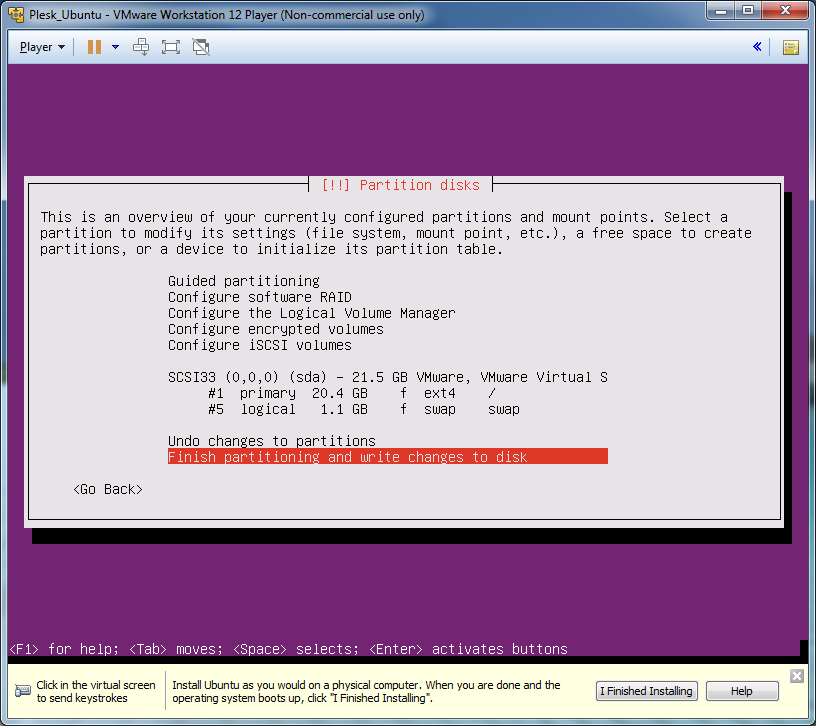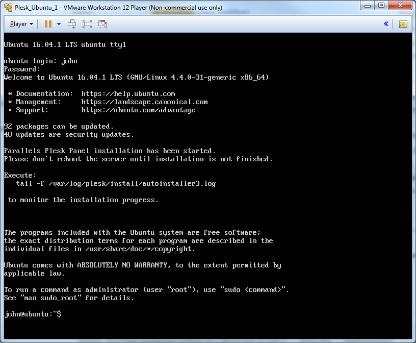 本小節闡述如何使用ISO鏡像在 VMware Workstation 12 Player 上安裝帶有Ubuntu 16.04 和Plesk 17.0 12 的虛擬伺服器。